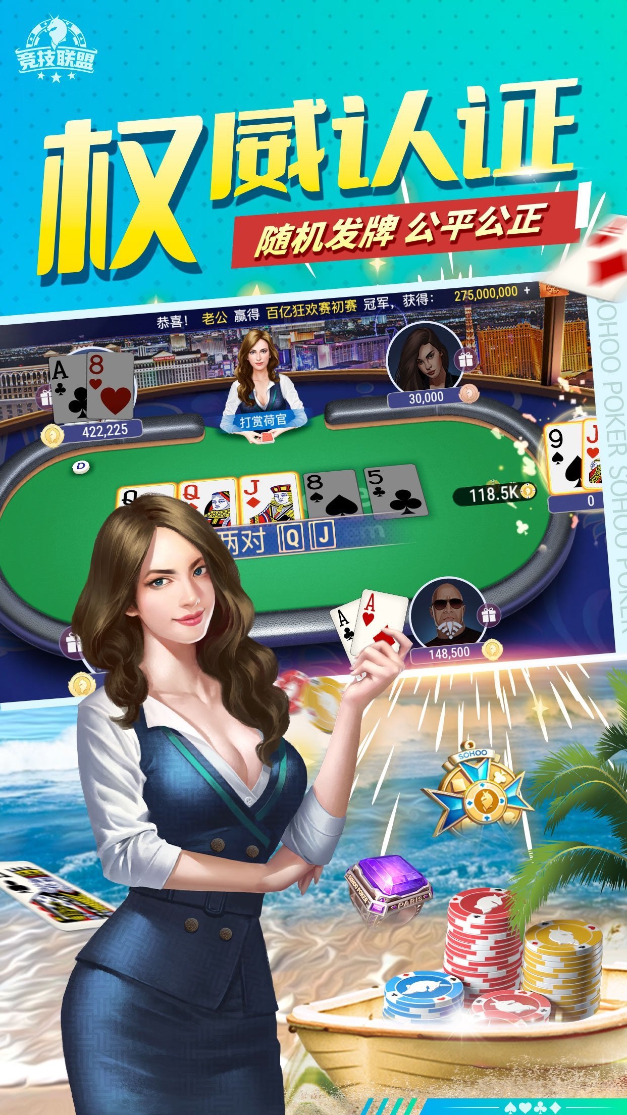 竞技联盟德州app苹果,在线竞技免费进入房间来试玩,玩家可以在对战中成为扑克之星,在玩乐中解锁高积分高奖励,成为VIP玩家,获取高奖励,在线免费畅玩精彩线上娱乐场等你来体验哦。