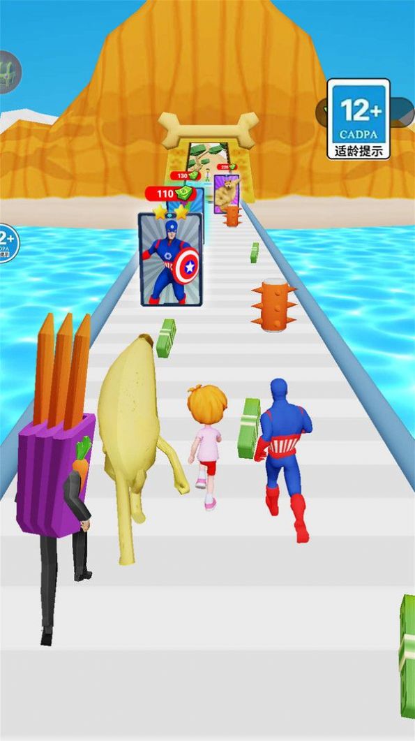 1.玩家置身于缤纷的香蕉乐园,扮演冲浪者去完成一系列的冲刺冒险;