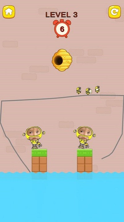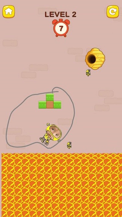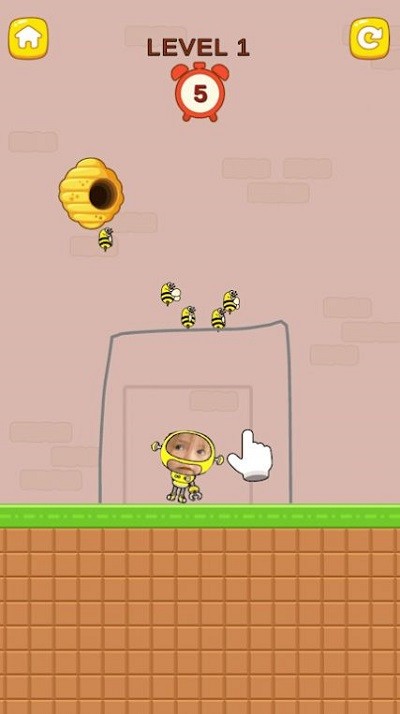 3、观察倒计时和蜜蜂动向,点击屏幕画线保护角色不被蜜蜂蜇到。